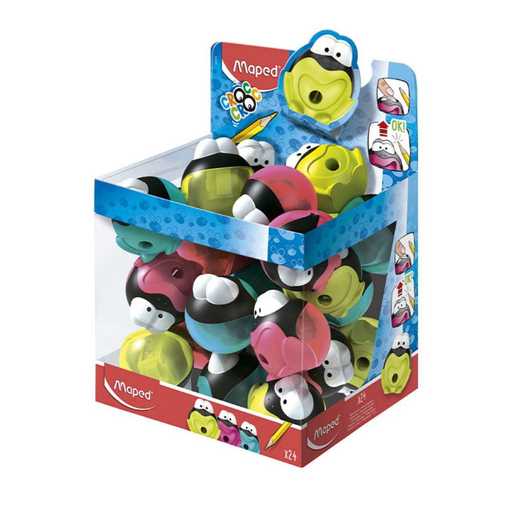 Afilalápiz con depósito en forma de conejo. Los dientes del conejito se mueven al girar el lápiz para sacar punta en el sentido correcto. Disponible en 3 colores. Con depósito. Dimensiones: 50x50x70 mm. Expositor: 20 unidades.