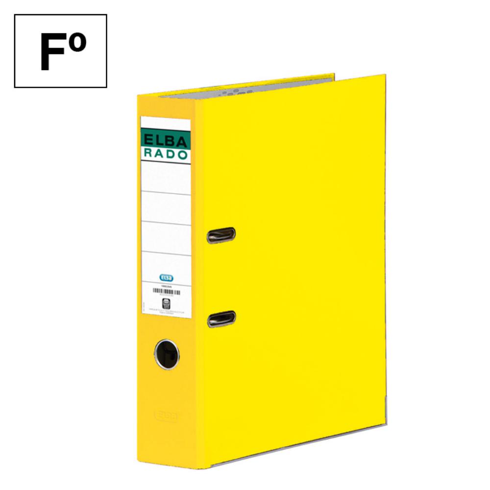 Colores alegres. Archivadores forrados con plástico de gran resistencia. Con rado. Con cantoneras. Etiqueta fija en el lomo. Color: amarillo.