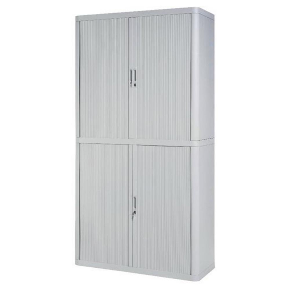 Estructura metálica, cuerpo en poliestireno resistente. Persiana de PVC y manilla integrada. Cerradura de doble salida, con un juego de dos claves numeradas. Estantes metálicoa negros preparados para carpetas colgantes A4. Se suministra sin montar. Fácil montaje en 2 minutos sin herramientas. 5 años de garantía. Armario de 204 cm de altura de 4 estantes. Color: blanco. Medidas (An x Al x Prof): 110 x 204 x 41 cm.