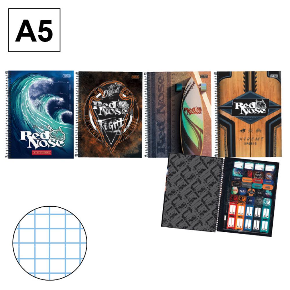 Bloc de espiral microperforado con tapa dura de cartón de 120 gramos. 4 diseños diferentes de cubierta. Contiene 80 hojas de 70 gramos. Portadas impresas a todo color laminado brillo. Encuadernación espiral color plata. Además, incluye bolsa portapapeles de 180 gramos, hoja de pegatinas y hoja para los datos personales a todo color. Rayado: cuadrícula de 4 mm. Tamaño A5-. Medidas: 140 x 200 mm.