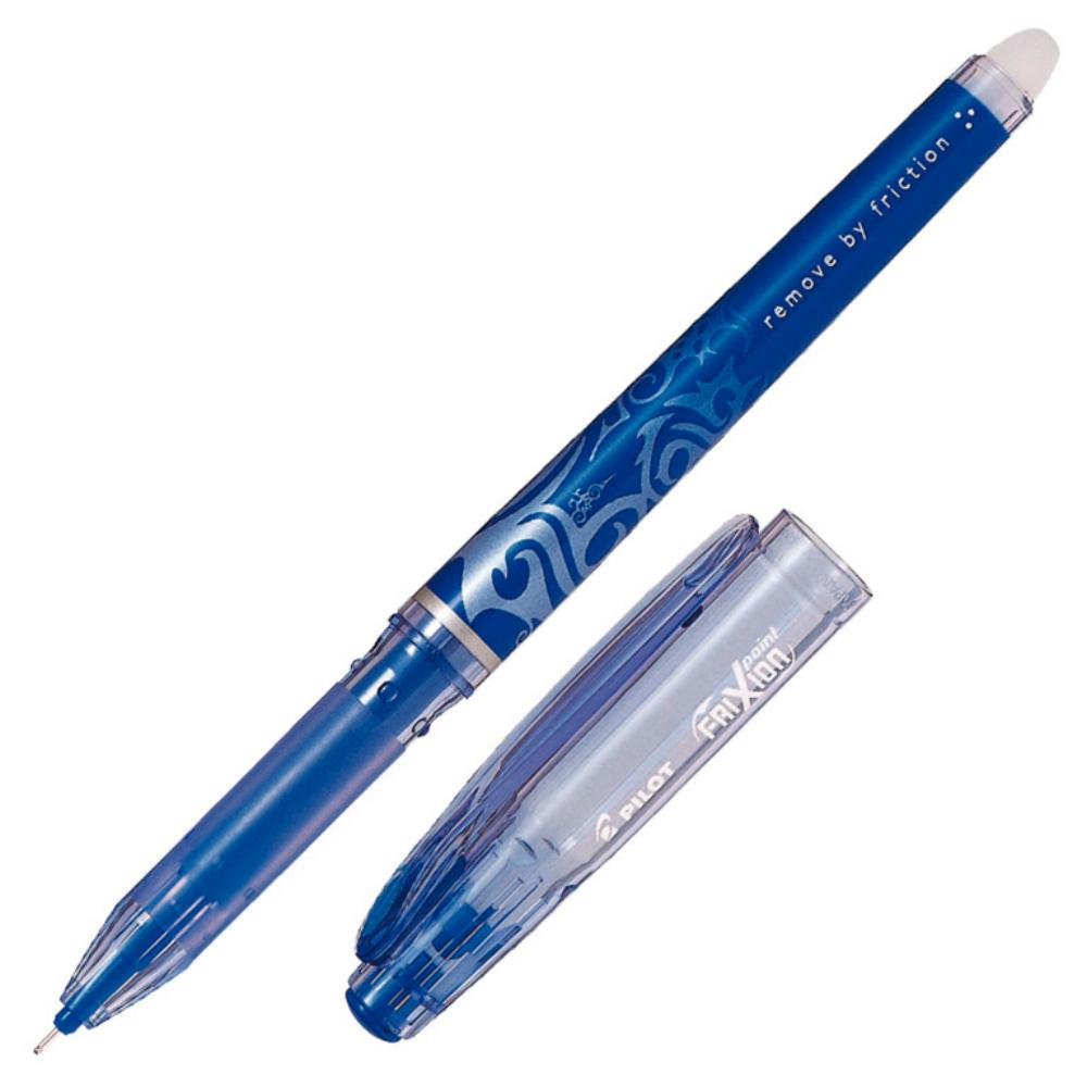 Bolígrafo borrable. Punta de aguja. La tinta desaparece por fricción. No deja restos, no mancha el papel. Punta de 0,7 mm. Trazo de 0,25 mm. Color: azul. Caja de 12 unidades.