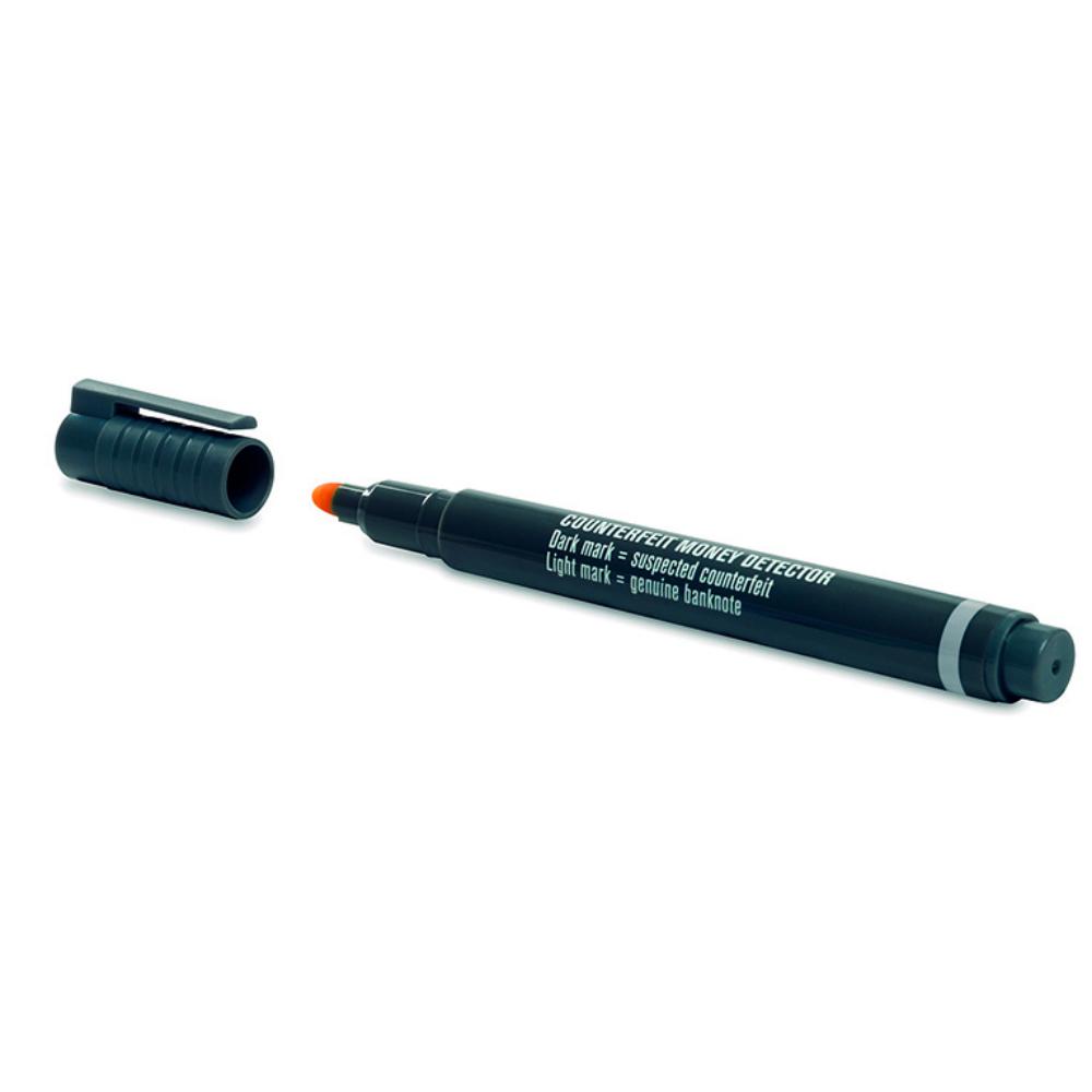 En solo dos segundos, el rotulador le indicará si un billete es falso o genuino. Simplemente marque el billete y observe: si la tinta se oscurece, es muy probable que el billete sea falso. Funciona en todas las divisas. 4 ml de tinta +10.000 marcaciones. Presentación: blíster 1 ud. Envase de 10 unidades.