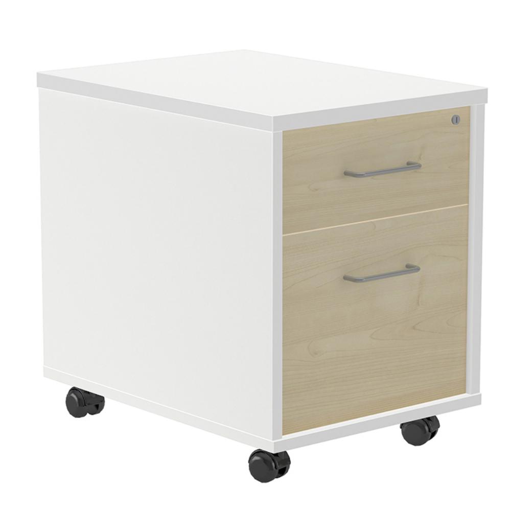 Estructura realizada en melamina de 19 mm en su totalidad. Las 4 ruedas disponen de freno. Cerradura con 2 llaves plegables. Sistema de cierre centralizado para la confidencialidad deseada. Sistema antivuelco. Tiradores metálicos. Cajones metálicos realizados en chapa de acero. Guías metálicas con rodamientos de nylon. Tiene un cajón y un carpetero. Medidas: 59,5 x 40 x 58 cm. Color de la estructura: blanco. Color de los cajones: haya.