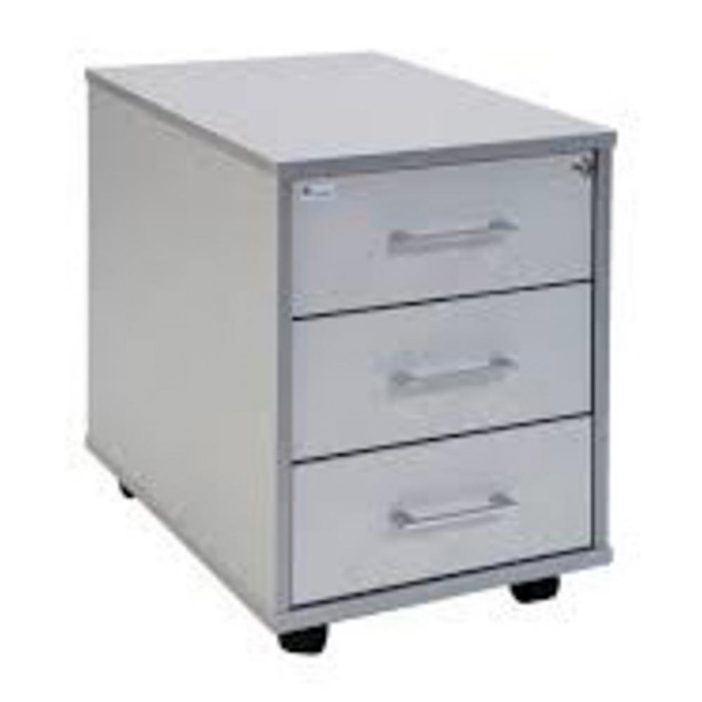 Estructura realizada en melamina de 19 mm en su totalidad. Las 4 ruedas disponen de freno. Cerradura con 2 llaves plegables. Sistema de cierre centralizado para la confidencialidad deseada. Sistema antivuelco. Tiradores metálicos. Cajones metálicos realizados en chapa de acero. Guías metálicas con rodamientos de nylon. Tiene 3 cajones. Medidas: 59,5 x 40 x 58 cm. Color de la estructura: aluminio. Color de los cajones: gris.
