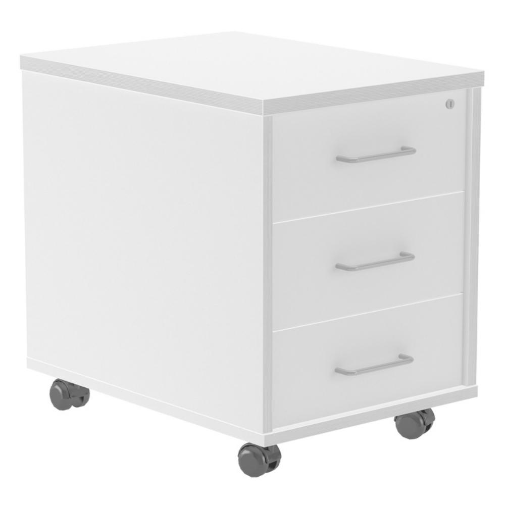 Estructura realizada en melamina de 19 mm en su totalidad. Las 4 ruedas disponen de freno. Cerradura con 2 llaves plegables. Sistema de cierre centralizado para la confidencialidad deseada. Sistema antivuelco. Tiradores metálicos. Cajones metálicos realizados en chapa de acero. Guías metálicas con rodamientos de nylon. Tiene 3 cajones. Medidas: 59,5 x 40 x 58 cm. Color de la estructura: blanco. Color de los cajones: blanco.