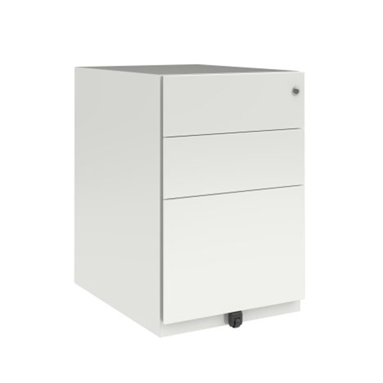 Cerradura con dos llaves. Sistema antivuelco. Las ruedas disponen de sistema de freno. Cajones metálicos realizados en chapa de acero. Sistema de cierre centralizado. Guías metálicas con rodamientos de nylon. Medidas: 42 x 64,5 x 56,5 cm. Color: blanco.