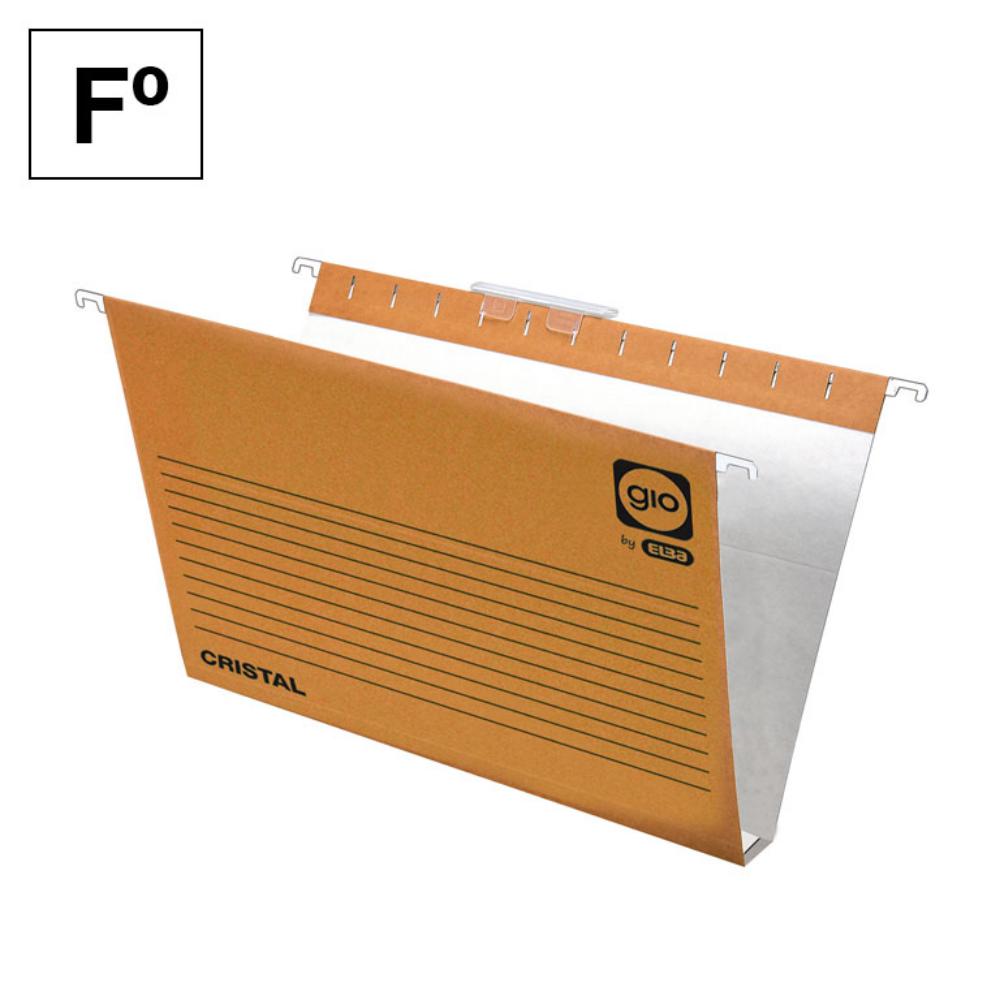 Fabricadas en kraft bicolor. Visor superior de 8 cm. Varilla metálica. Lomo en U de 30 mm. Gramaje: 240 g. Formato folio. Medidas: 225 x 350 x 365 mm. Contenido: 25 unidades.