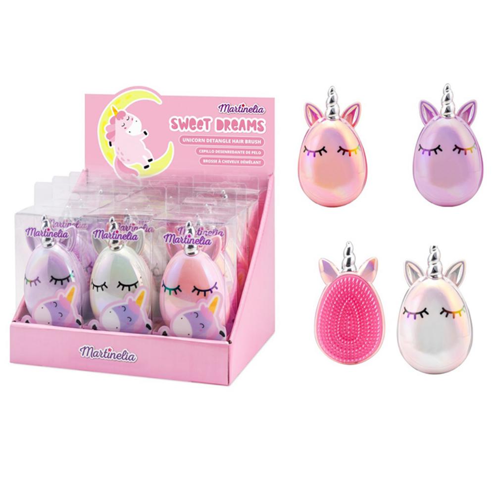Cepillo desenredante Sweet Dreams de Martinelia. Desenreda el cabello de manera suave y sin tirones. 3 modelos surtidos. Expositor de 12 unidades. Se servirán aleatoriamente según existencias.