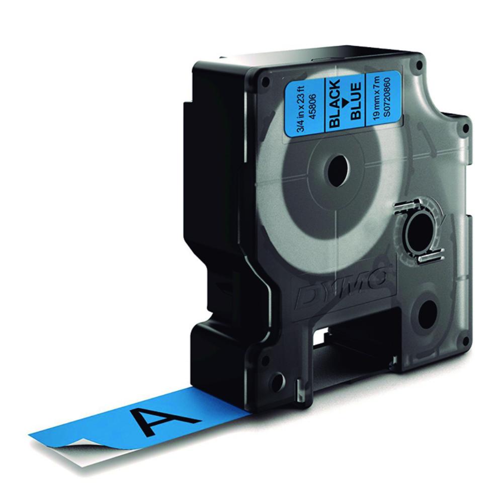 Cintas Dymo estándar: con tecnología de transferencia térmica. Cintas Dymo Poliéster: fabricada en poliéster opaco muy resistente a golpes y arañazos. Con adhesivo permanente. Medidas: 19 mm x 7 m. Color: texto negro sobre fondo azul. Compatibilidad con: con: LP350, LM350, LM420P, LM450, LM360D, LMPNP, LMPC, LW450Duo.