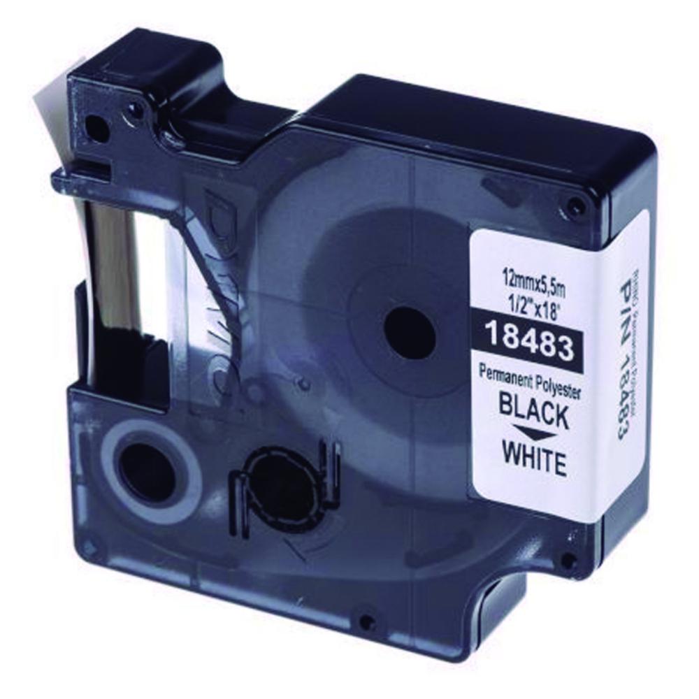 Cintas de nylon, especiales para cables eléctricos. Cintas para Dymo Rhino 4200, 5200 y 6000. Medidas: 12 mm x 3,5 m. Color: texto negro sobre fondo blanco.