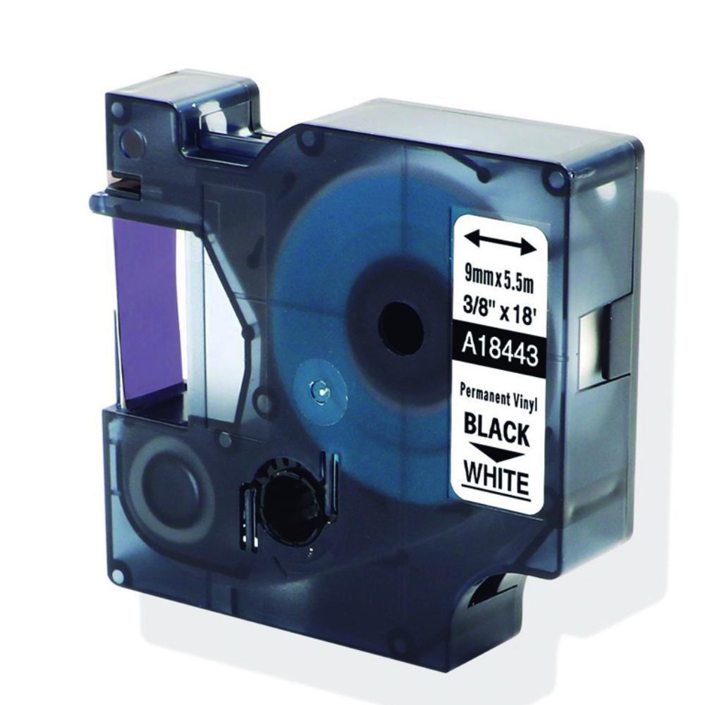 Cintas de vinilo especiales para señalización. Cintas para Dymo Rhino 4200, 5200 y 6000. Medidas: 9 mm x 5,5 m. Color: texto negro sobre fondo blanco.