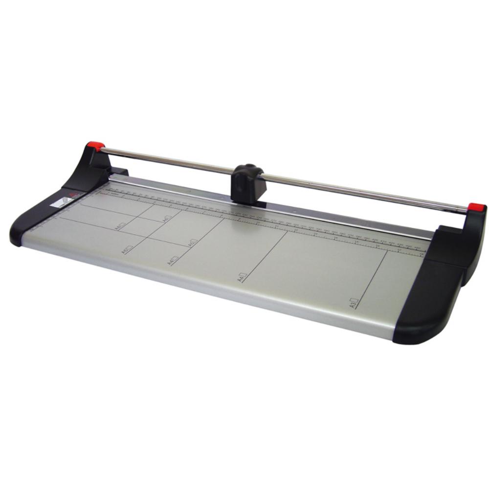 CompararRobusta. Cizalla de rodillo A3, largo de corte 460 mm. Capacidad de corte 7 hojas. Medidas en formato Din y de fotografía grabadas en la base. Dimensiones: 210 x 570 mm.