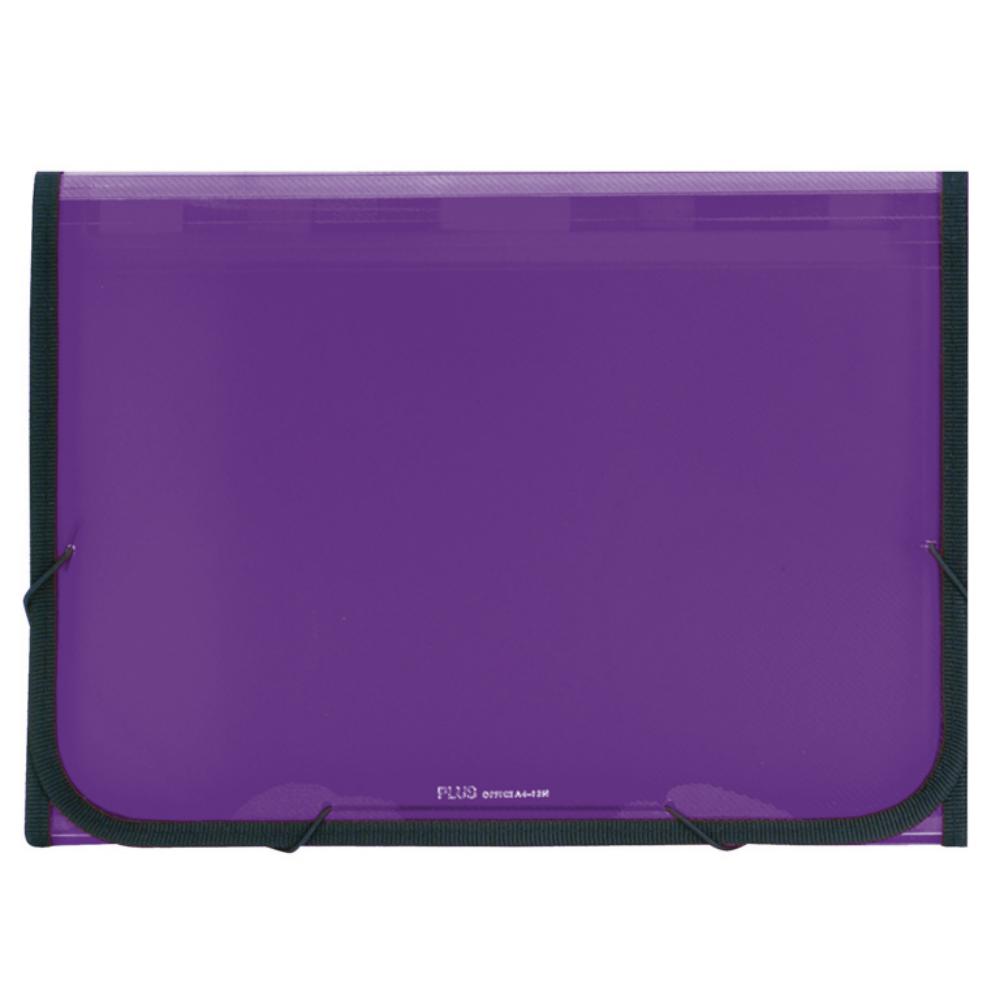 Carpeta clasificadora en polipropileno. Con doce separadores. Con gomas. Color Violeta. Medidas: 330 x 240 mm.