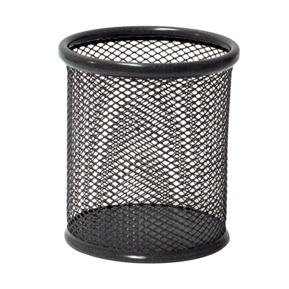 Cubilete portalápices metálico de rejilla. Dimensiones: 90 mm de diámetro x 105 mm. Color: grafito.