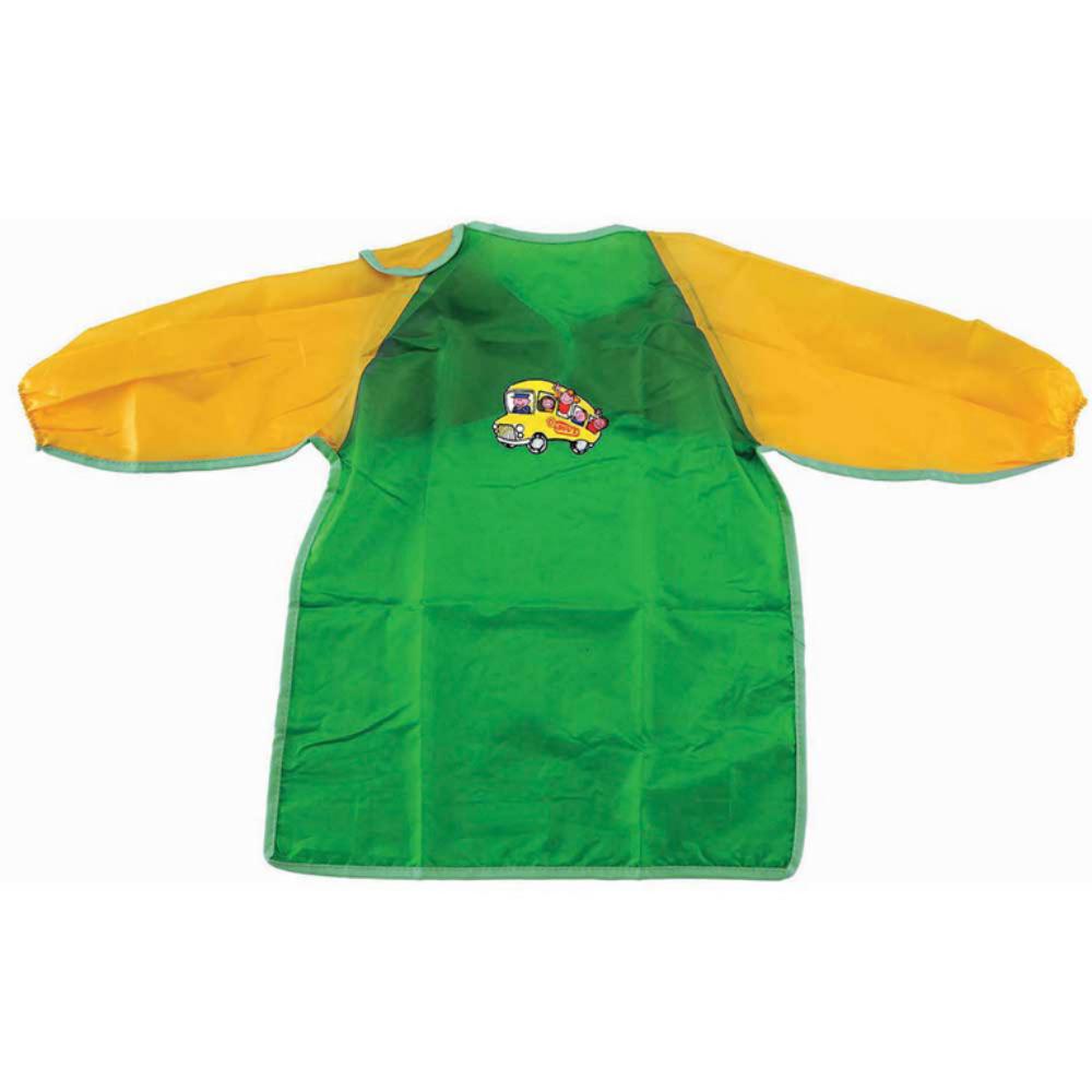 Delantal de poliéster con cierre de velcro y puños elásticos. Dos tallas para niños y niñas de 3 a 5 años y de 5 a 8 años.