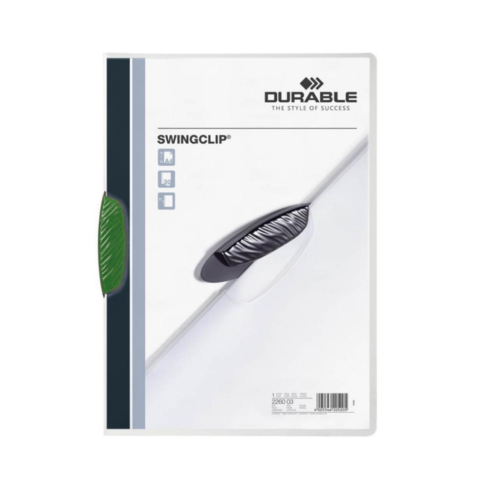 Diseño moderno. Dossier fabricado en polipropileno transparente extrarígido con pinza de plástico de color. Tamaño A4, capacidad 30 hojas. Medidas: 220 x 310 mm. Envase: 25 unidades.