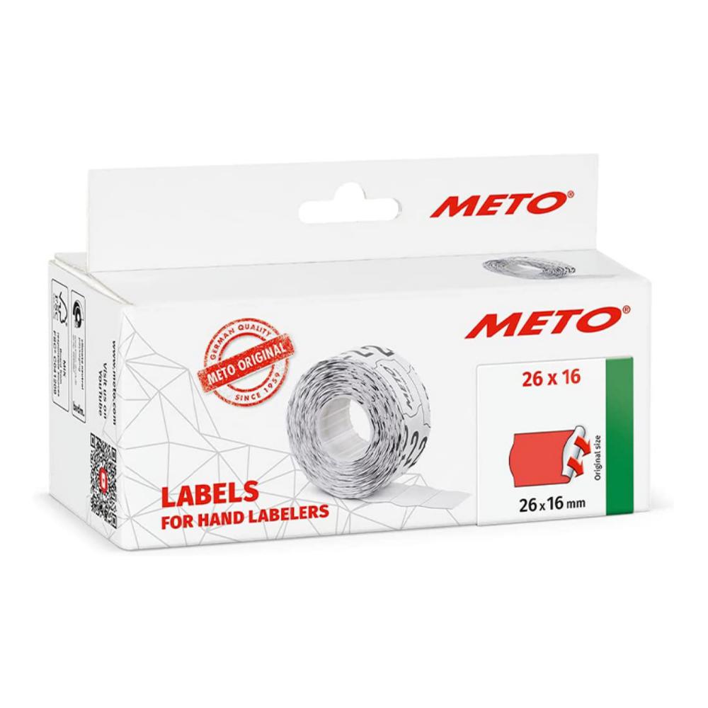 Etiquetas aptas para máquinas Meto. 6.000 etiquetas 26 x 16 mm. Color: rojo flúor.
