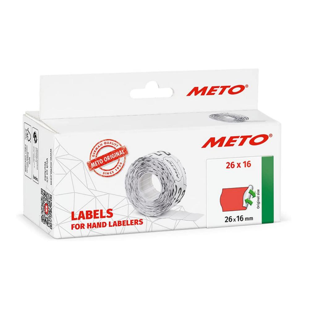 Etiquetas aptas para máquinas Meto. 6.000 etiquetas 26 x 16 mm. Color: rojo flúor.
