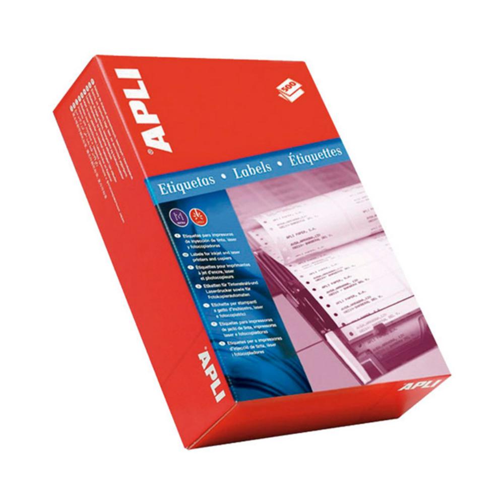 Etiquetas en continuo para impresoras matriciales y láser en continuo. Etiquetasde tamaño 137,2 x 74,1 mm (pulgadas: 54/10 x 35/12). Cada caja contiene 2.000 etiquetas con cantos romos: 500 pliegues, 4 etiquetas por pliegue. Salida: 1. Papel continuo con margen con orificios de arrastre, sin interrupción.