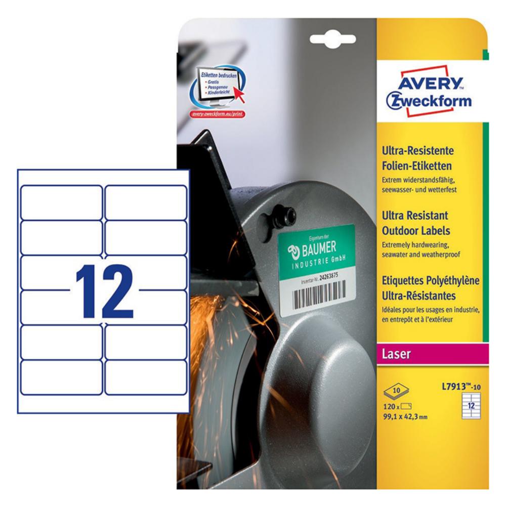 Etiquetas con adhesivo permanente, elásticas y flexibles, se adhieren perfectamente incluso en superficies curvas como probetas, barriles y frascos. Aptas para impresoras láser y fotocopiadora. Resisten a los agentes químicos, abrasiones, rayos UV, agua y temperaturas extremas de -40º C a +150º C. Pueden ser aplicadas sobre metal, plástico, superficies pintadas, policarbonato y vidrio. Esterilizables. Conformes a los estándares GHS-BS5609 Parte 2 para el etiquetado y transporte de las sustancias químicas. Sobre 10 hojas. Medidas: 45,7 x 21,2 mm. 480 etiquetas por paquete (48 etiquetas por hoja).