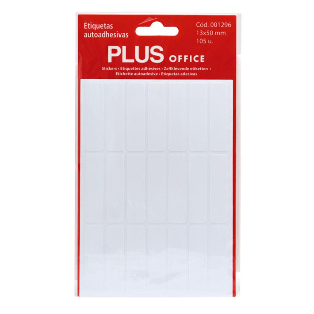 Para múltiples usos. Etiquetas autoadhesivas blancas para etiquetaje y oficina. Sobres con 5 hojas de etiquetas con adhesivo permanente. 105 etiquetas por sobre. Medidas: 13 x 50 mm.