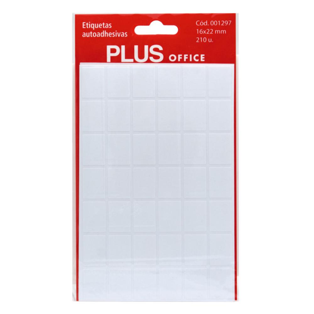 Para múltiples usos. Etiquetas autoadhesivas blancas para etiquetaje y oficina. Sobres con 5 hojas de etiquetas con adhesivo permanente. 210 etiquetas por sobre. Medidas: 16 x 22 mm.