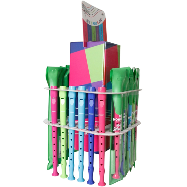 Contenido expositor: 630744 – 5 ud. – Flauta Hohner 9508 Azul claro, 630748 – 5 ud. – Flauta Hohner 9508 Fucsia, 630723 – 5 ud. – Flauta Hohner 9508 Verde claro, 630721 – 5 ud. – Flauta Hohner 9508 Violeta, 630857 – 4 ud. – Flauta Hohner 9508 Coral, 630858 – 4 ud. – Flauta Hohner 9508 Malva, 630847 – 4 ud. – Flauta Hohner 9508 Rojo, 630846 – 4 ud. – Flauta Hohner 9508 Azul ocuro