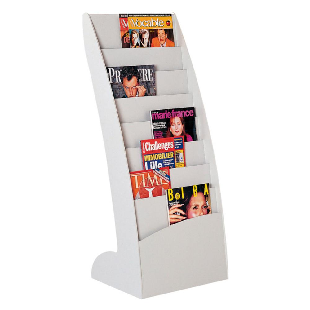 Especialmente adaptado para exponer documentos, revistas, catálogos en ferias, oficinas, recepción, etc. 8 casillas para distintos tamaños. Espacio entre 2 compartimentos 2 cm. 100 mm de visibilidad. Peso 5,9 kg. Dimensiones: 108,3 (alt) x 44,3 (an) x 35 (Pro) cm. Color: Gris. Este producto se servirá en un plazo aproximado de 5 días.