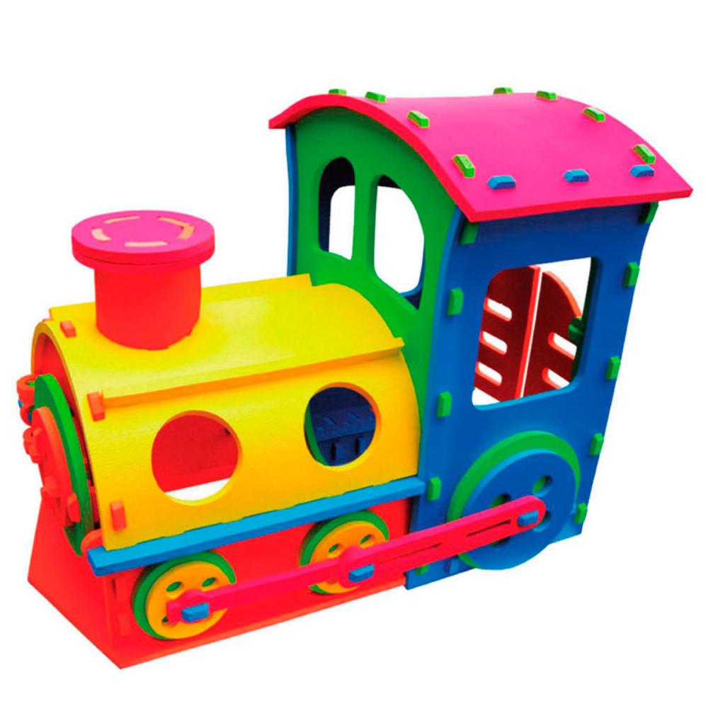 CompararLocomotora multicolor. Fácil montaje. Fabricadas en goma Eva adecuado para niños. Material suave y seguro. Medidas: 80 x 124 cm. Altura: 100 cm.