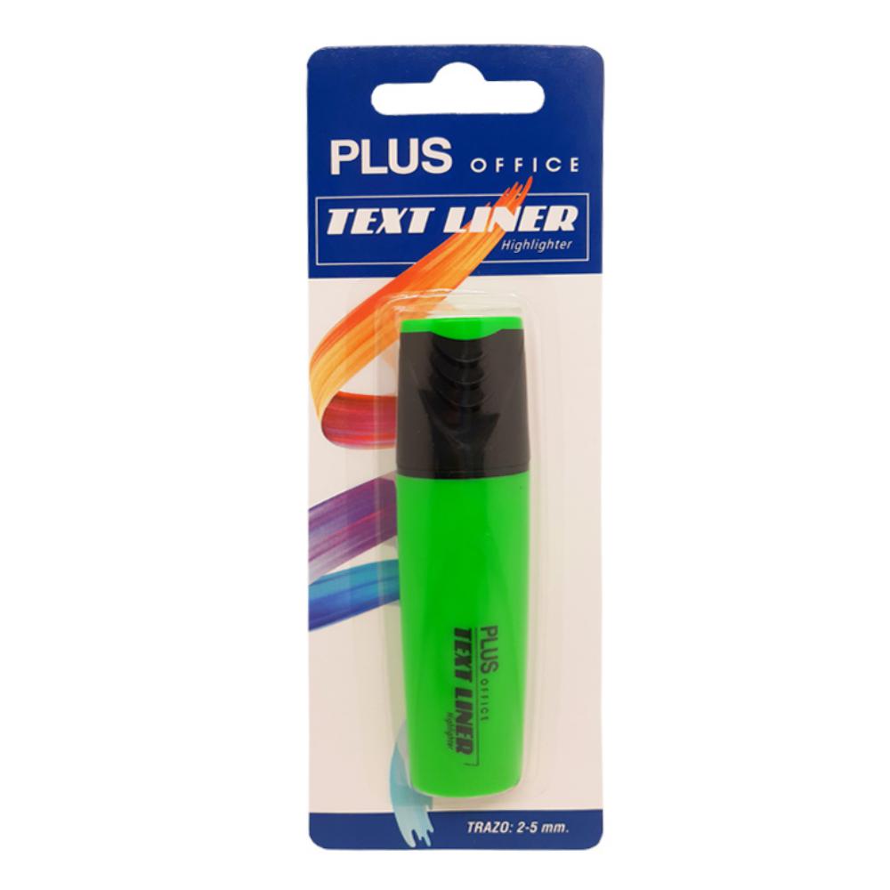 Marcador fluorescente con tinta pigmentada al agua. Punta biselada. Tinta brillante de principio a fin. Nuevo diseño con mayor capacidad de tinta para quedure mucho más. Cuerpo de polipropileno reciclable del color de la tinta. Apto para todo tipo depapeles: fax, autocopiativo y fotocopia. Trazo: 2 – 5 mm. Color: verde. Envase: 12 blísters. Capacidad de tinta: 3,2 gramos.