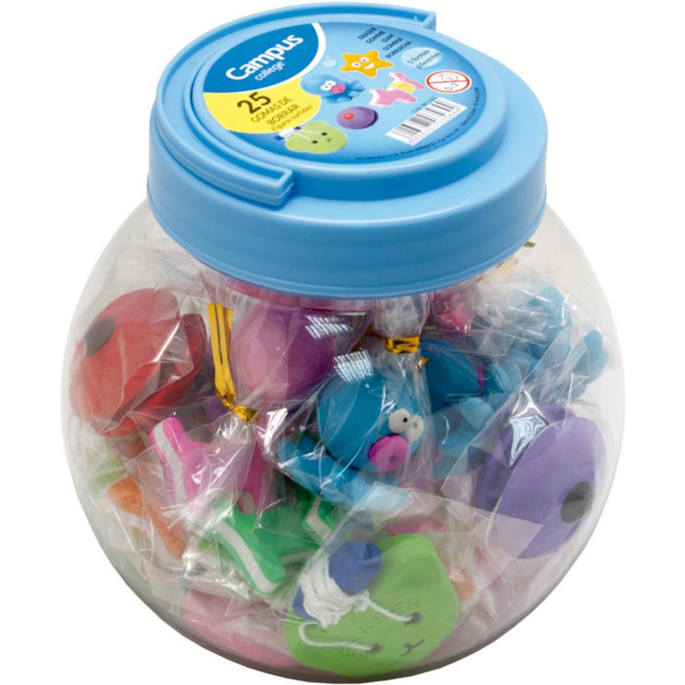 Gomas de borrar infantiles con diseños coloridos y divertidos. Ideal para lápiz. Diferentes animales y objetos. Se presentan en un bote de 25 unidades.