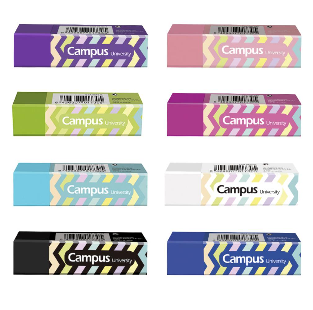 Gomas de borrar de 8 colores diferentes y con nombres de frutas: blanco (milk), negra (cookies), rojo (cherry), azul claro (pineapple), azul (blueberry), verde (watermelon), violeta (eggplant) y rosa (strawberry). Formato pequeño. Medidas: 50 x 16 x 15 mm. Presentación: expositor de 32 unidades.