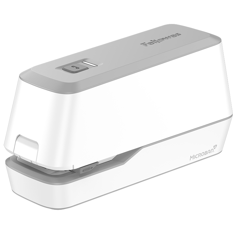 Grapadora de sobremesa eléctrica, grapa sin esfuerzo hasta 40 hojas. Funcionamiento silencioso. Base antideslizante. Guía de profundidad de grapador ajustable. Botón de grapado para ser usada de forma manual. Utiliza grapas del 24/6-26/6. Medidas: 66 x 182 x 94 mm. Peso 640 gr.