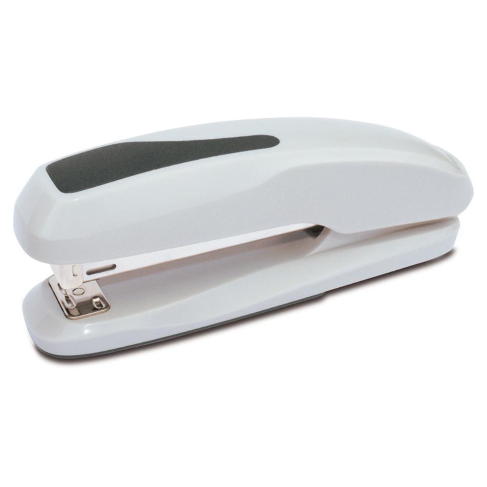 Cuerpo en plástico ABS antichoque. Mecanismo metálico y empuñadura de caucho. Sistema cargador deslizante antibloqueo. Capacidad 150 grapas. Capacidad grapado: 25 hojas papel 80 g. Tipo de grapas: 24/6 y 26/6. Color: gris claro / gris oscuro.