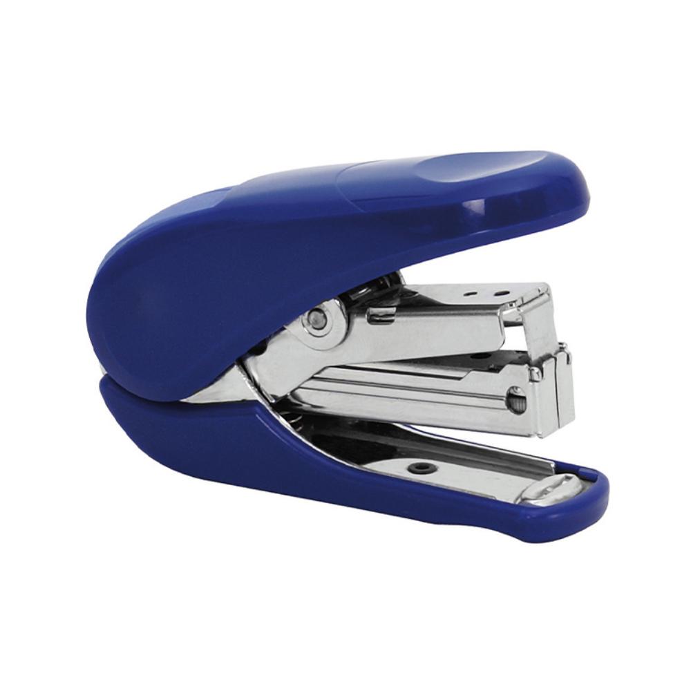 Mínimo esfuerzo en el grapado. Cuerpo en plástico ABS y mecanismo metálico. Su diseño ergonómico y mecanismo proporciona menos esfuerzo en el grapado. El hoyuelo en la tapa facilita una sujeción cómoda. Incorpora sacagrapas en la parte posterior e indicador de nivel de grapas. Cargador de grapas integrado fácil de abrir. Capacidad para 100 grapas. Capacidad de grapado 20 hojas. Color: azul. Presentación: blíster 1 unidad + grapas.