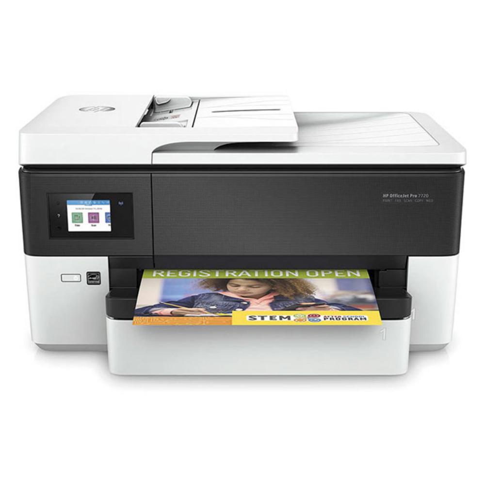 Impresora A3 InkJet color, copiadora, escáner y fax. Pantalla táctil en color. Impresión sin bordes. Alimentador automático de documentos. Impresión automática a doble cara. Permite que varias páginas se copien o escaneen a la vez. Aplicación HP Smart. Imprime hasta 30.000 páginas al mes. Velocidad de impresión en blanco y negro y a color de 34 ppm. Bandeja de alimentación de 250 hojas. Conectividad: USB 2.0, Wi-Fi, HP ePrint, AirPrint, Google Cloud Print, Mopria, Ethernet, LAN inalámbrica y RJ-11. Medidas: 584,9 x 444,8 x 306,4 mm. Peso: 15,5 kg.