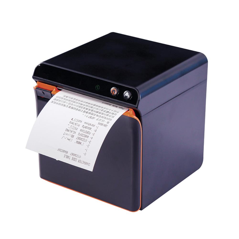 Impresora de tickets térmica económica de alta velocidad, imprime texto y gráficos de alta resolución con interface USB + Ethernet. Puede sacar el papel tanto en posición frontal como en posición vertical. Velocidad de impresión 250 mm/s. Resolución 203 dpi. Ancho de papel 80mm. También imprime códigos de barras. Puerto de cajón portamonedas: 1 puerto RJ-11. Autocorte completo o parcial. Compatible con Windows 10/8/7/XP/MacOS/Ubuntu. Medidas: 127 x 131 x 129 mm.