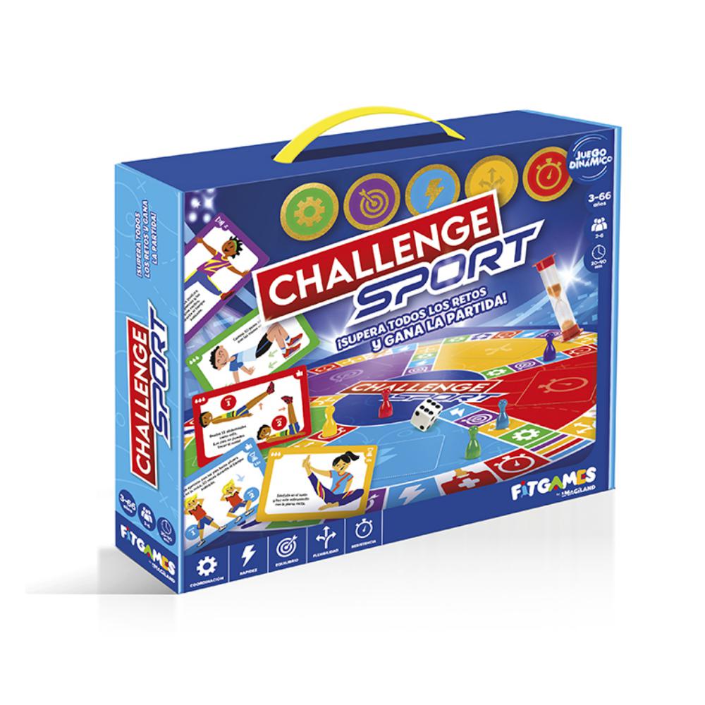 Juego con retos de rapidez, equilibrio, coordinación, flexibilidad y resistencia. Contenido: tablero de juego, 60 tarjetas con retos, 5 medallas con cinta, reloj de arena, 2 dados, y fichas. Edad recomendada: mayores de 5 años.
