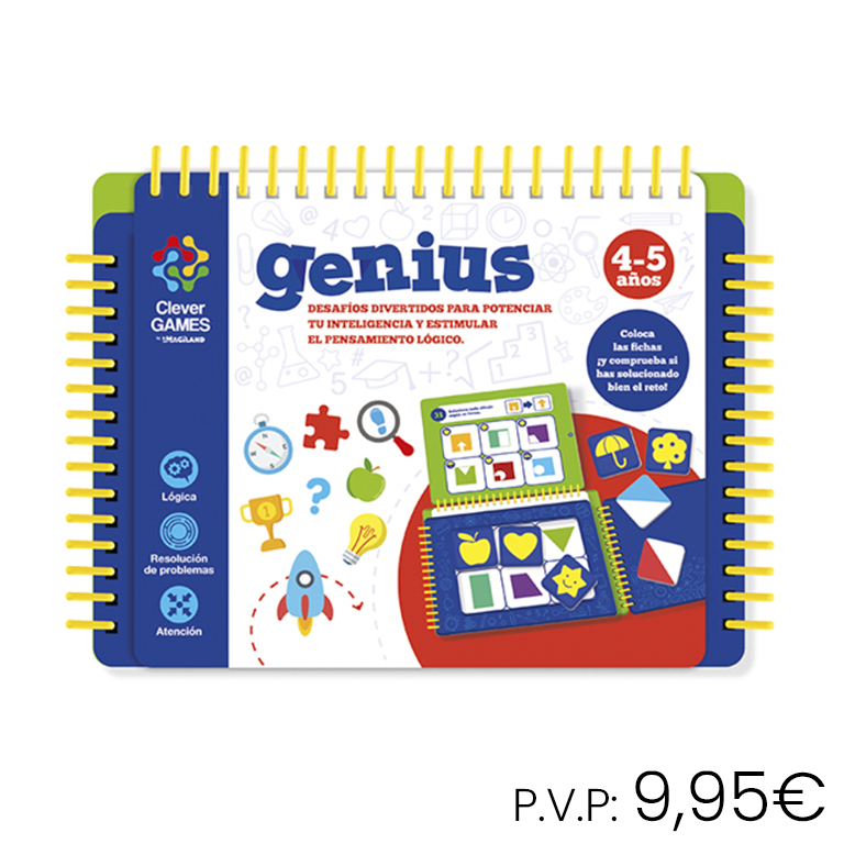 Desafíos divertidos para potenciar tu inteligencia y estimular el pensamiento lógico. Contiene distintas curiosidades e infinidad de juegos. Con el método autocorrectivo aumenta la autonomía personal y mejora la capacidad de concentración. Edad recomendada: 4-5 años,