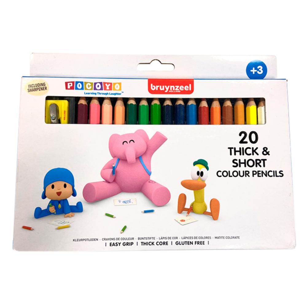 Set de lápices de colores Bruynzeel de la colección Pocoyo. 12 colores diferentes, lápices cortos de fácil agarre, punta gruesa y de una excelente mezclabilidad. Sin gluten.