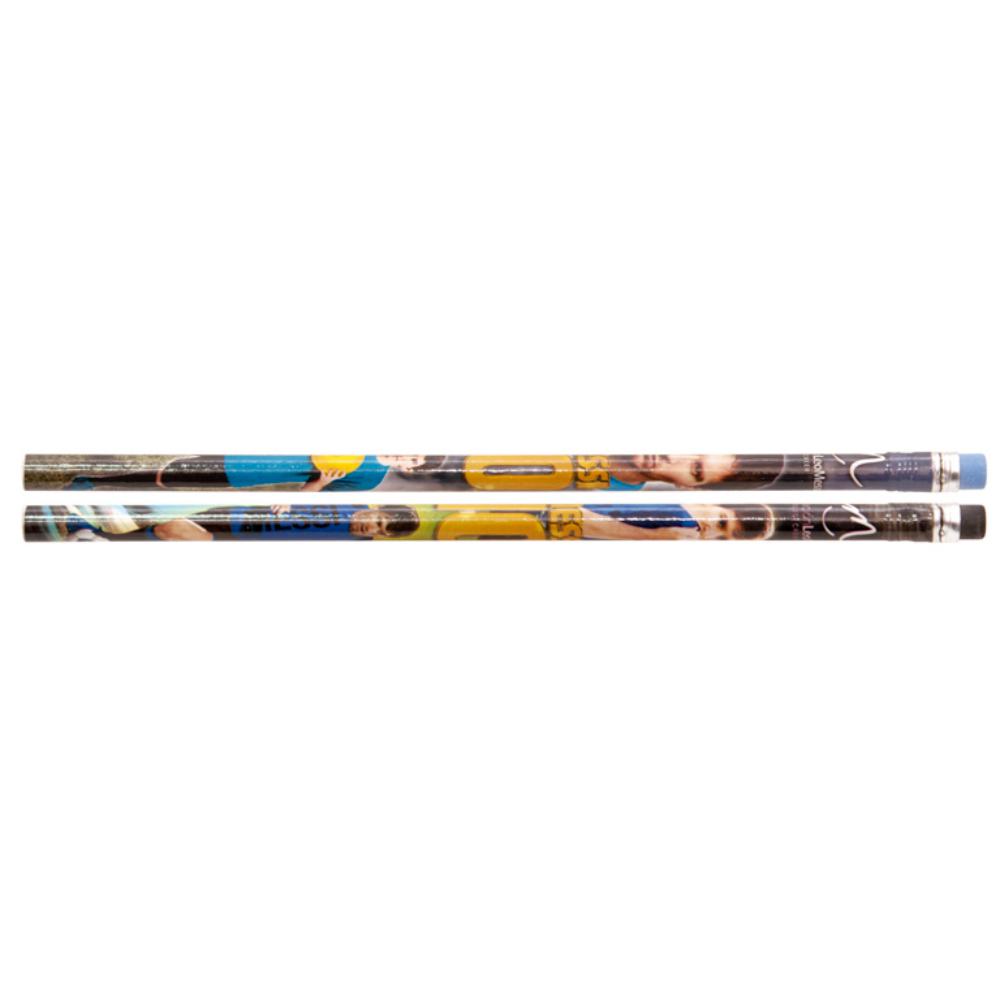 Bote de 144 lápices con goma con la foto de Leo Messi. Color: Azul.