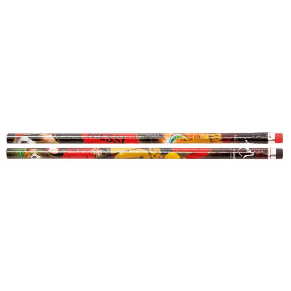 Bote de 144 lápices con goma con la foto de Leo Messi. Color: Rojo