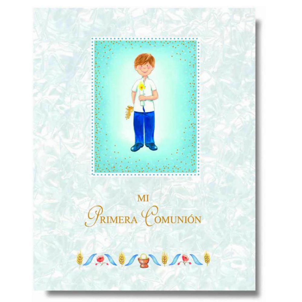 CompararLibro de Comunión niño Símil Nácar con Música. Libro de tapas acolchadas con estamapación dorada en la portada. Con 18 hojas impresas a color y hojas en blanco para fotos y recuerdos. Estuche decorado tamaño 35x27cm