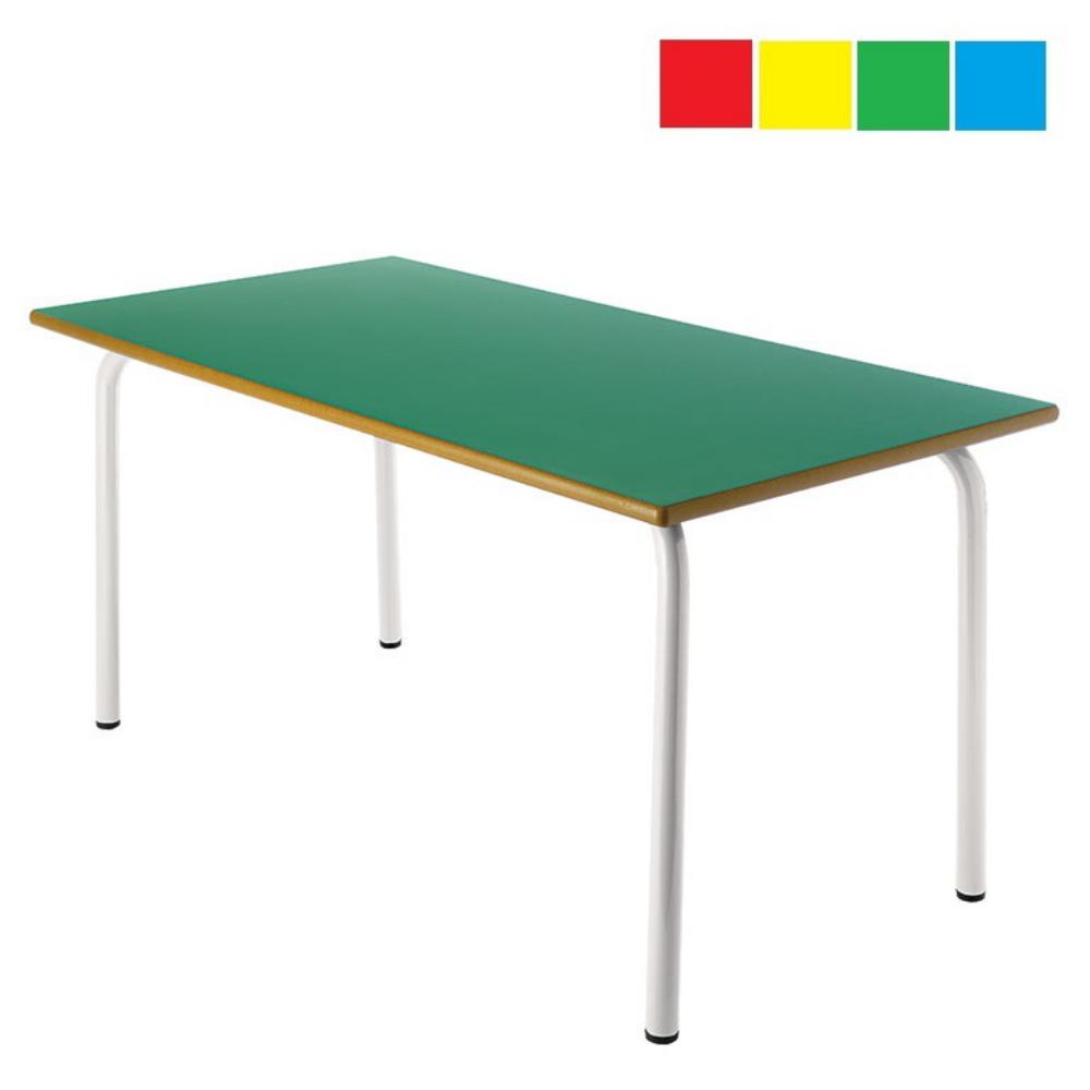 Mesa con estructura en tubo de acero, con tapa en DM estratificado. Disponible en varios colores.