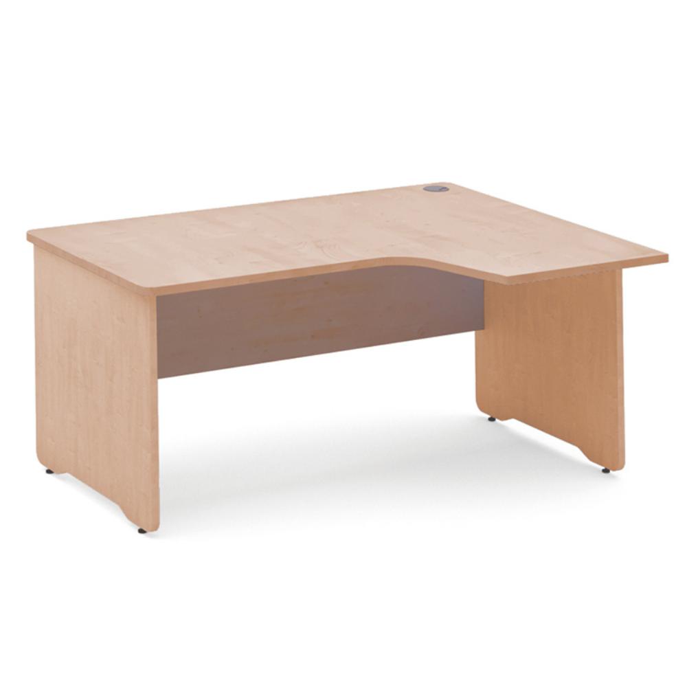 La gama Work busca la ergonomía en todas sus piezas, por eso crea diseños de líneas suaves y sin aristas que proporcionan bienestar y confort. Superficie de mesa: melanímico sobre aglomerado de 25 mm de grosor con cantos de PVC de 2 mm. Superficie de mesa con cantos rectos y estructura con cantos redondeados. Medidas (An x Prof x Al): 160 x 120 x 80 cm. Forma en L en la parte derecha. Color de la estructura: haya. Color del tablero: haya.