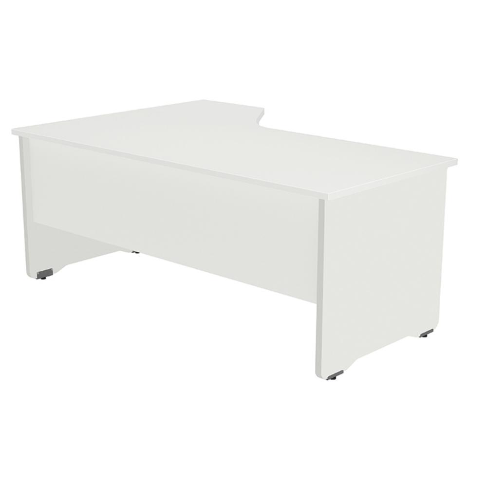 La gama Work busca la ergonomía en todas sus piezas, por eso crea diseños de líneas suaves y sin aristas que proporcionan bienestar y confort. Superficie de mesa: melanímico sobre aglomerado de 25 mm de grosor con cantos de PVC de 2 mm. Superficie de mesa con cantos rectos y estructura con cantos redondeados. Medidas (An x Prof x Al): 160 x 120 x 80 cm. Forma en L en la parte derecha. Color de la estructura: blanco. Color del tablero: blanco.