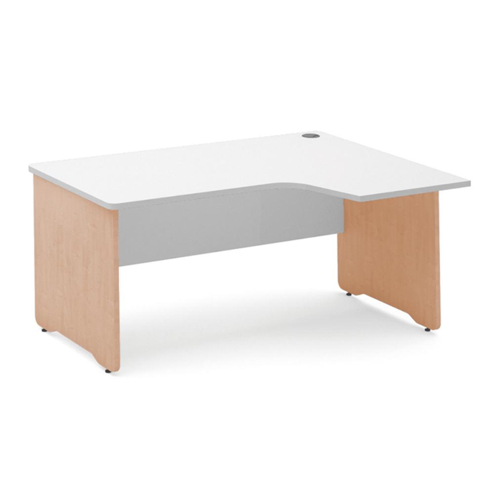 La gama Work busca la ergonomía en todas sus piezas, por eso crea diseños de líneas suaves y sin aristas que proporcionan bienestar y confort. Superficie de mesa: melanímico sobre aglomerado de 25 mm de grosor con cantos de PVC de 2 mm. Superficie de mesa con cantos rectos y estructura con cantos redondeados. Medidas (An x Prof x Al): 180 x 120 x 80 cm. Forma en L en la parte derecha. Color de la estructura: haya. Color del tablero: blanco.