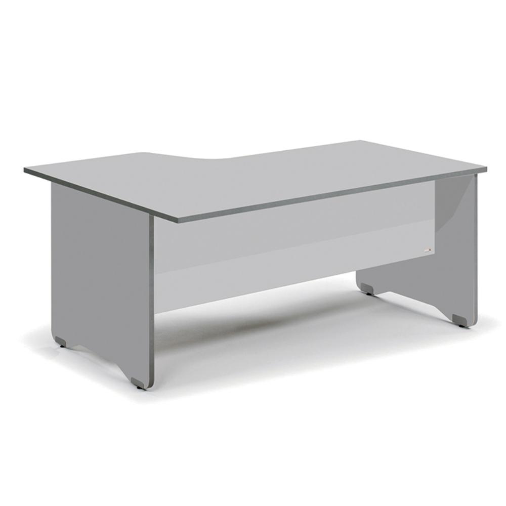 La gama Work busca la ergonomía en todas sus piezas, por eso crea diseños de líneas suaves y sin aristas que proporcionan bienestar y confort. Superficie de mesa: melanímico sobre aglomerado de 25 mm de grosor con cantos de PVC de 2 mm. Superficie de mesa con cantos rectos y estructura con cantos redondeados. Medidas (An x Prof x Al): 180 x 120 x 80 cm. Forma en L en la parte derecha. Color de la estructura: aluminio. Color del tablero: gris.
