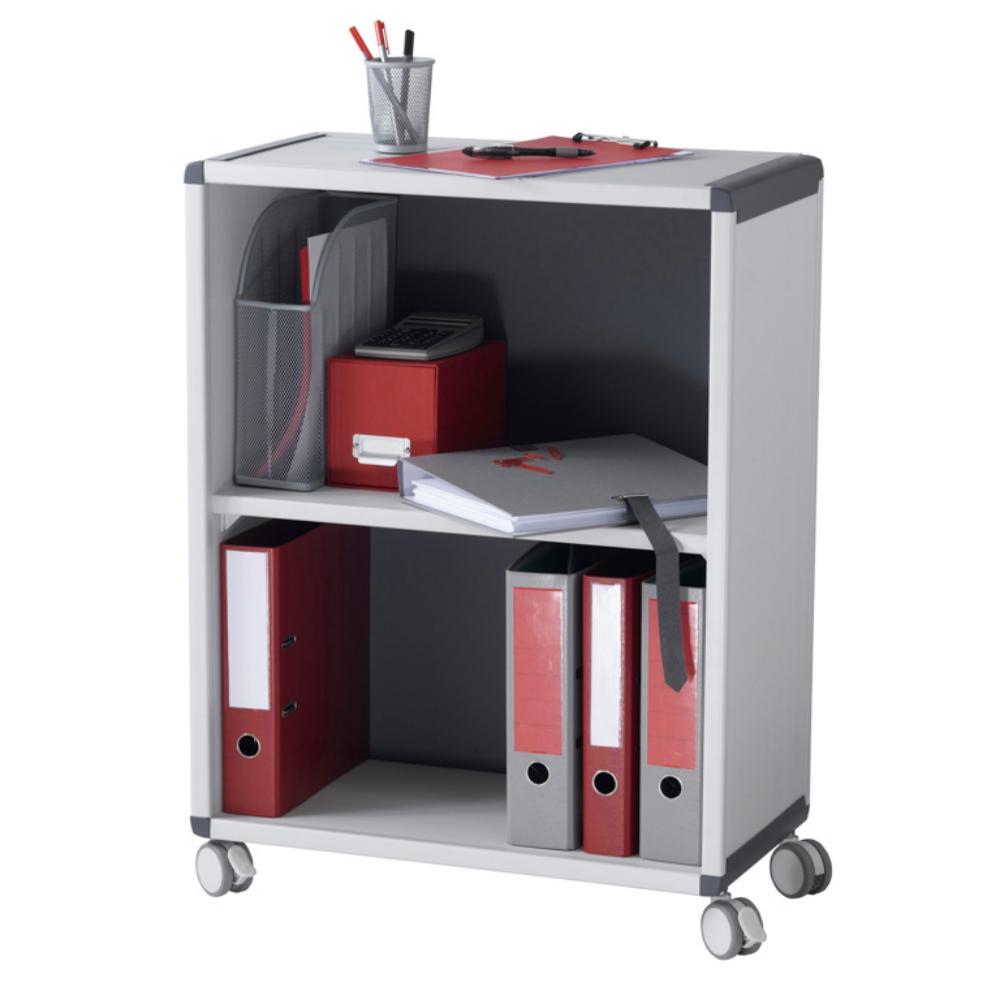Estructura de poliestireno. Capacidad para 7 archivadores de palanca en cada altura. Dimensiones interior (An x Al x Prof): 60 x 36 x 30 cm. Con 4 ruedas que facilitan la movilidad del archivador y con 2 frenos delanteros. Fácil montaje. Medidas totales (An x Al x Prof): 65,1 x 86,4 x 33 cm. Color: antracita.