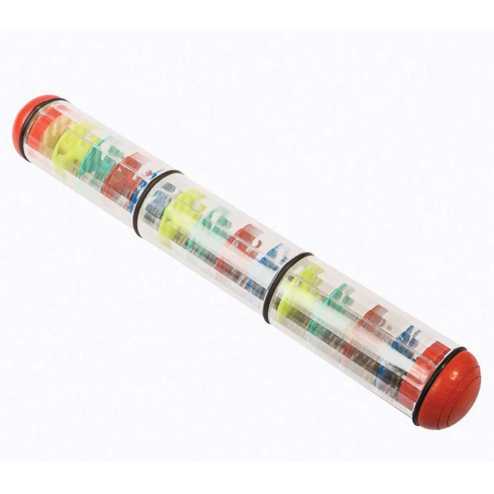 Palo de lluvia de 30 cm. El palo de lluvia puede ser inclinado, dejando que las piedrecillas creando un efecto similar a la lluvia, la intensidad varía según el ángulo. También puede ser golpeado ligeramente para lograr un sonido más controlado.